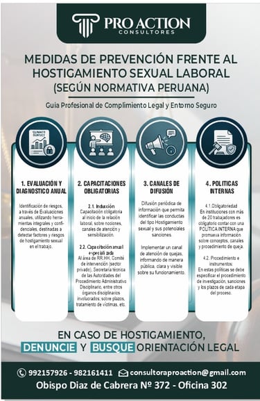La normativa peruana impone un enfoque principalmente preventivo. El empleador debe: